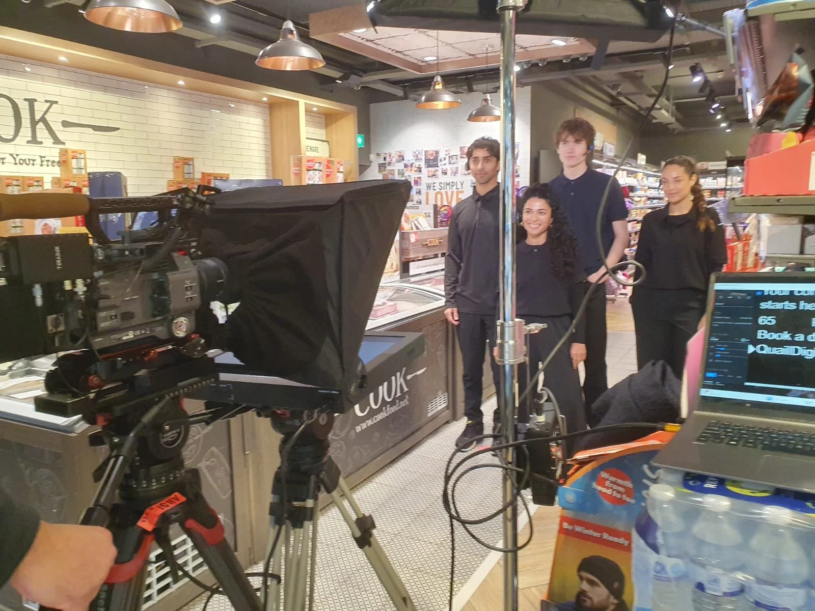 Teleprompter presenters on a Corporate Video Shoot in a Morrison’s Store in Gloucestershire